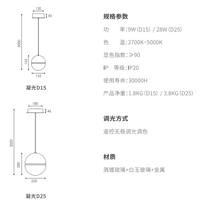 凝光吊灯用双层弯曲的造型作为主要造型特征形成在空间里自由灵动的造型,,以一定的角度倾斜,,,形成丰富的画面,,,,半圆形等分的灯罩采用白玉料与透明溅镀两种工艺,,下路利用直下式光学提供充足光线,,,,上路则采用测发光方式,,,发光面透过溅镀的玻璃曲面折射出一个光的倒影。。。。两种方式组合在一起,,,,使其在简单的几何形态中有自己的表达。。。。