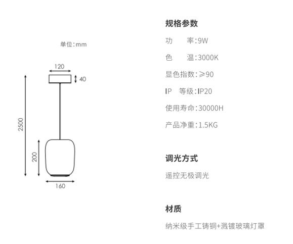 产品简介:手工吹制高硼硅玻璃,,,,圆润柔和;在内部的上路光透过玫瑰金色网格铸铜件投射出类似烛火的效果,,,,在空间里显得更加灵动,,,外层玻璃采用溅镀金属质感,,,自下而上渐消,,同时镜面镀层折射环境光线,,使产品更加轻盈通透不压抑,,下路光采用直下光,,,满足1.5米圆桌面充足照明。。。同时设计有防眩格栅,,,桌面边缘的视线高度不会有直接光线照射到,,,,体验舒适。。。。